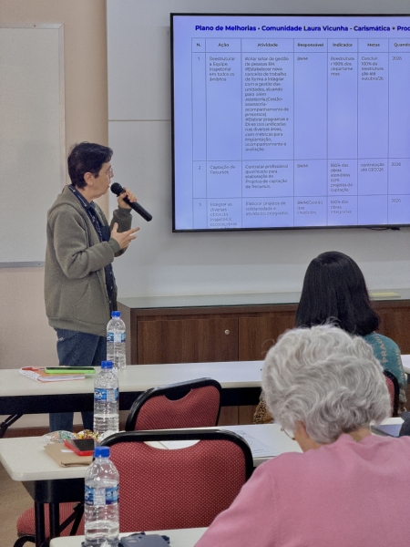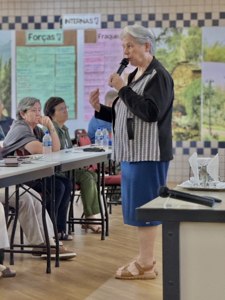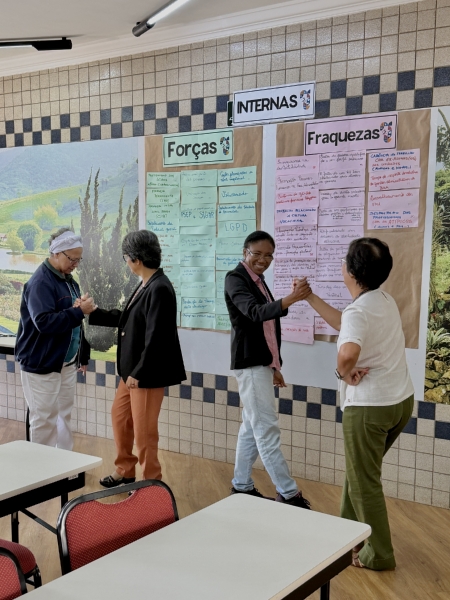 Com o uso de tecnologia, todos colaboraram simultaneamente em um documento na nuvem, o que permitiu uma experiência dinâmica e sinodal de construção conjunta. Na plenária final, Ir. Amélia de Assis Castro revisitou cada dimensão do Mapa, analisando as contribuições e dando ao grupo a possibilidade de inserir novas propostas em tempo real.