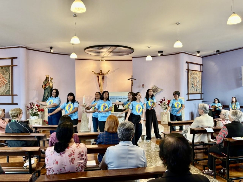 Na parte da tarde fomos presenteadas com o teatro “A ti as confio”, preparado pela Comunidade da Casa de Formação, Santa Teresa. O chamado: “A ti as Confio”, que mudou a vida de Madre Mazzarello, continua a ressoar ao longo da história das nossas comunidades e a dar a cada FMA, a cada comunidade educativa, respiro de universalidade. Se olhamos para as origens percebemos como a santidade vivida por Madre Mazzarello, pelas primeiras Irmãs, pelas jovens, é uma santidade de rosto missionário. Em seguida participamos de um divertido bingo dançante, animado pela Ir. Ana Maria Cordeiro. A festa foi encerrada com o momento orante: “Caminhos de Vida, Memórias do Coração”, conduzido pela Ir. Jane Maria da Silva. Celebramos este dia com espírito de gratidão, alegria e esperança.