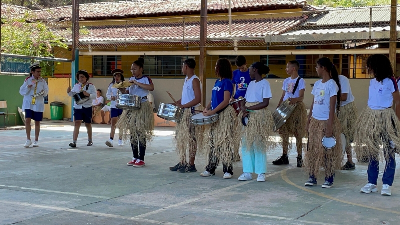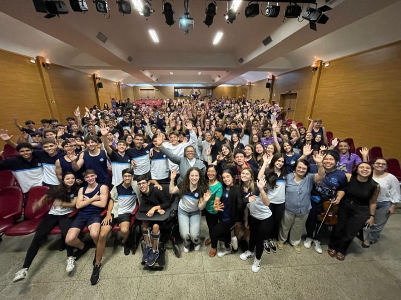 E nesta manhã, uma nova etapa de entusiasmo com os estudantes do ensino médio, para uma proposta de voluntariado VIDES: uma experiência encantadora, entre música, sorrisos e talentos artísticos que falam de esperança.