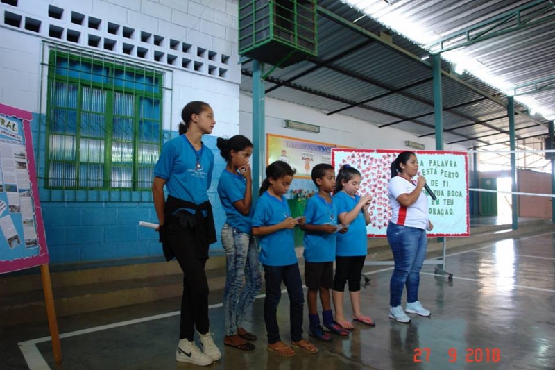 A Coordenadora Kênia iniciou dando boas vindas aos educandos e fazendo memória de todas as atividades realizadas no pátio do Chiara, como abertura do mês com o tema: A palavra está perto de ti, em sua boca e em seu coração, visitas recebidas e temas trabalhados com os educandos coletivamente.