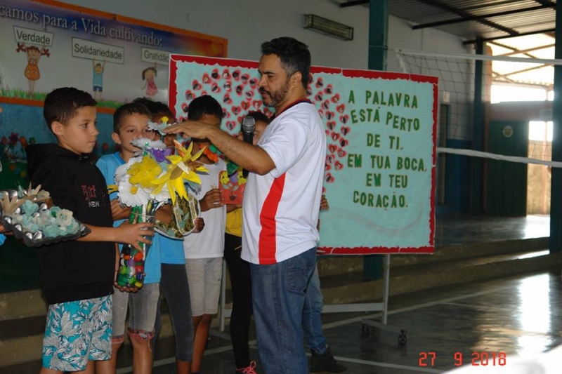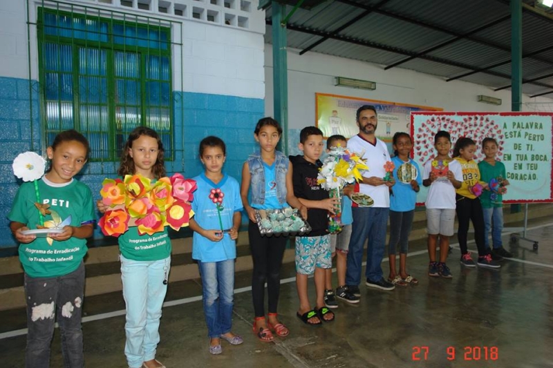 Na sequência, o educador Vander apresentou as atividades do Projeto Criarte, que trouxe como tema central a preservação do Meio Ambiente com a criação de flores para a primavera, com materiais reciclados.