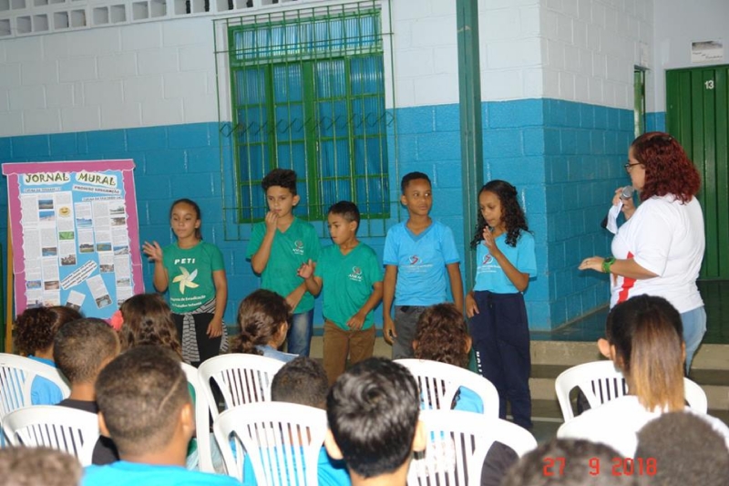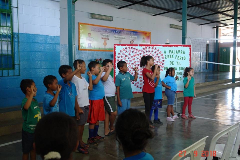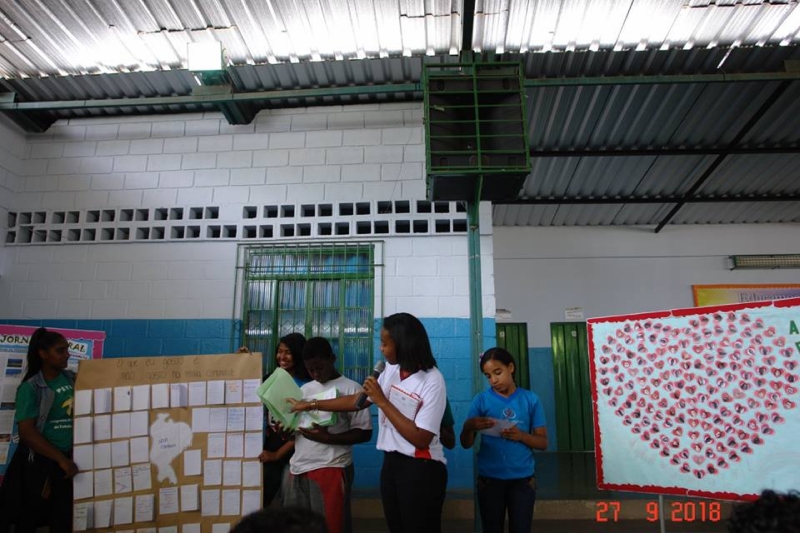 Em seguida, a educadora Raquel apresentou o Projeto Enter@ção que trabalha a partir do tema comunicação, os educandos apresentaram dentre outras atividades a linguagem de sinais, Libras.