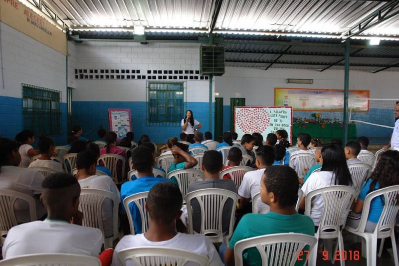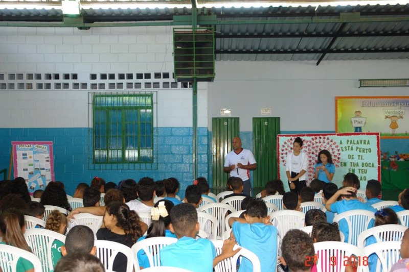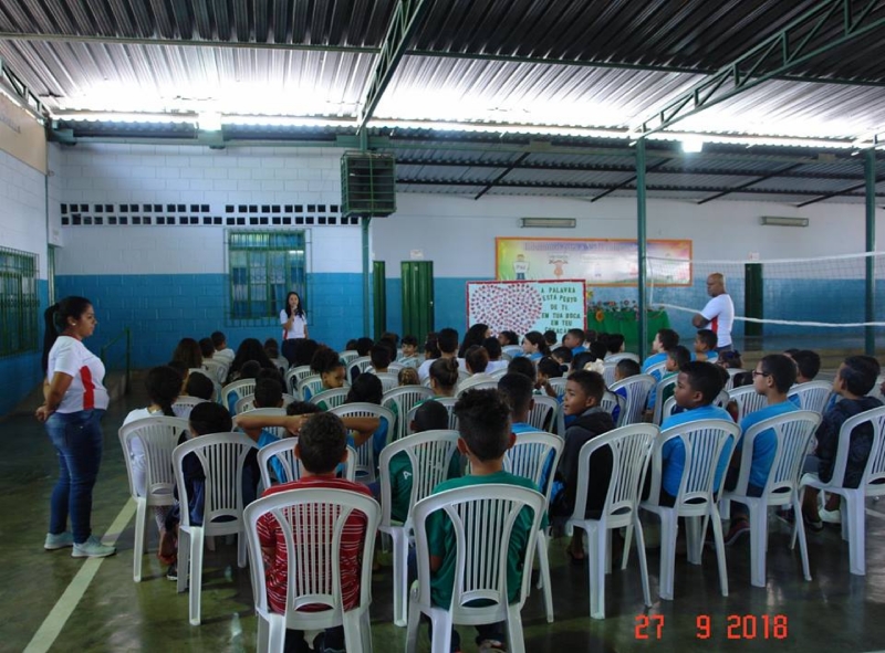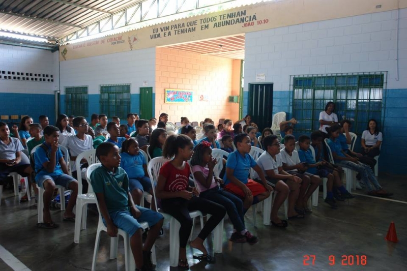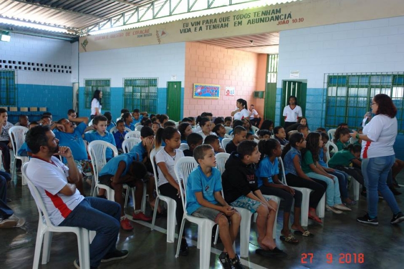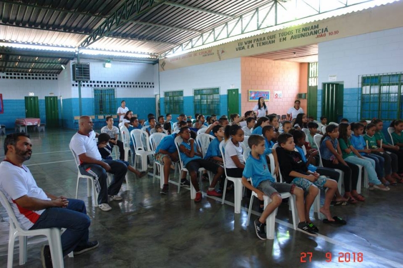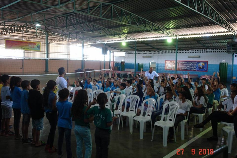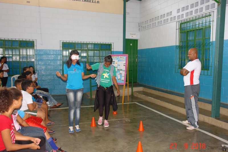 Após, o educador Sandro apresentou o Projeto Criando Laços, onde foi trabalhado o tema: Respeito as diferenças. Os educandos puderam experienciar um pouco da realidade vivida por pessoas com deficiência auditiva, motora e visual através de atividades cooperativas.