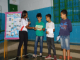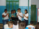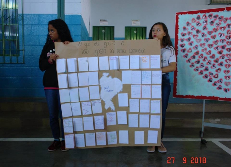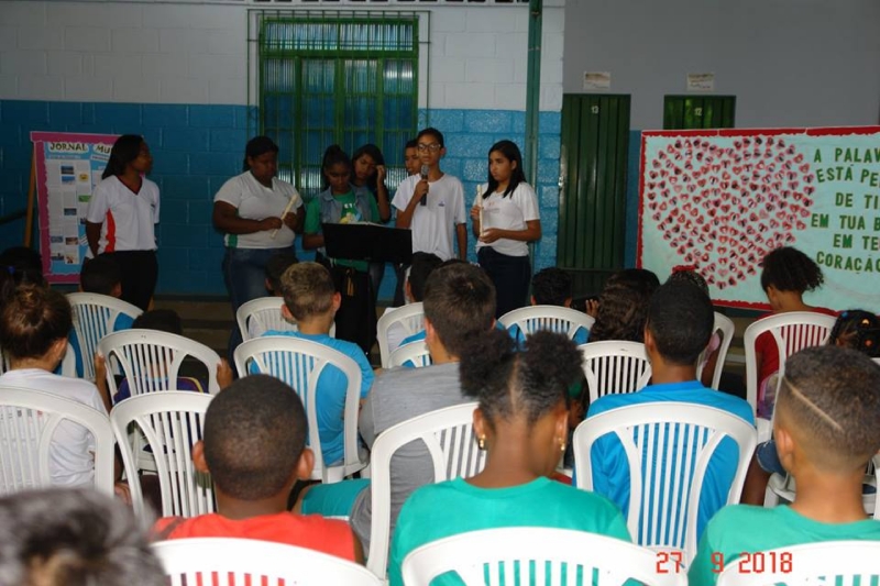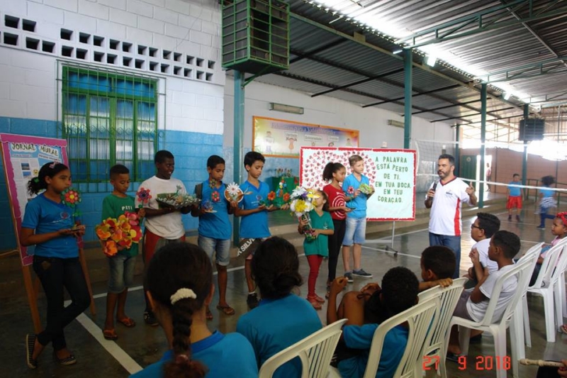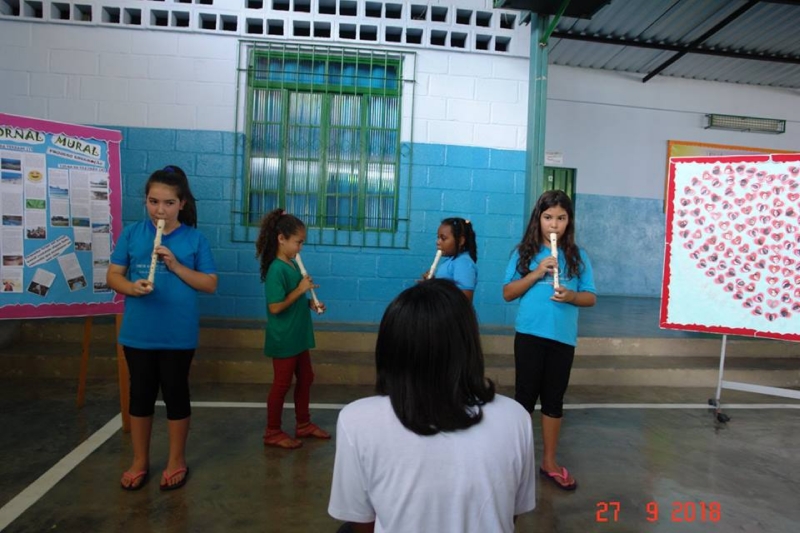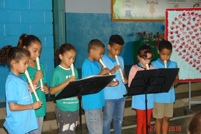 A educadora Vitória apresentou as atividades dos Projetos Tecendo Relações e Sopro Mágico, onde os educandos conheceram as “Bem aventuranças” e puderam refletir sobre cada uma delas. Foram discutidas ainda questões pontuais sobre o bairro Nova Contagem dentre outros temas. Já no Projeto Sopro Mágico assistimos apresentações de flauta dos educandos dos turnos da manhã e da tarde.
