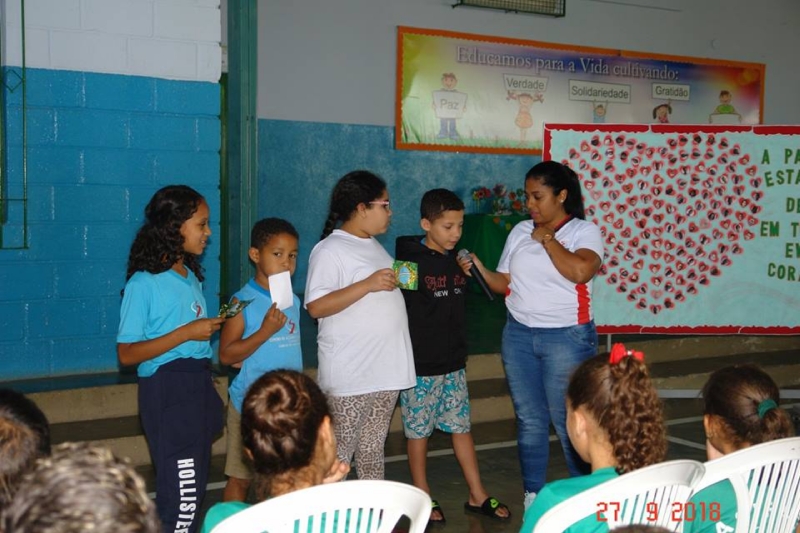 Na acolhida de hoje, dia 27 de setembro, a Comunidade Educativa do Chiara realizou a acolhida de fechamento do mês.