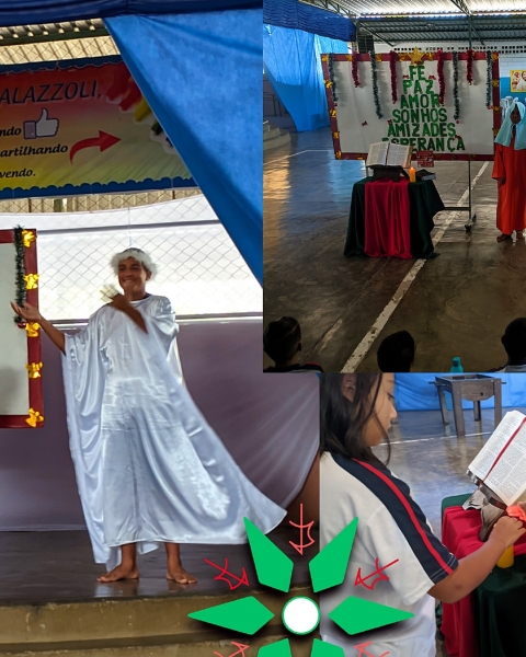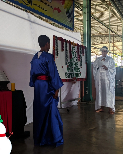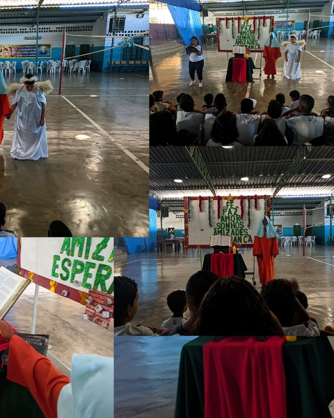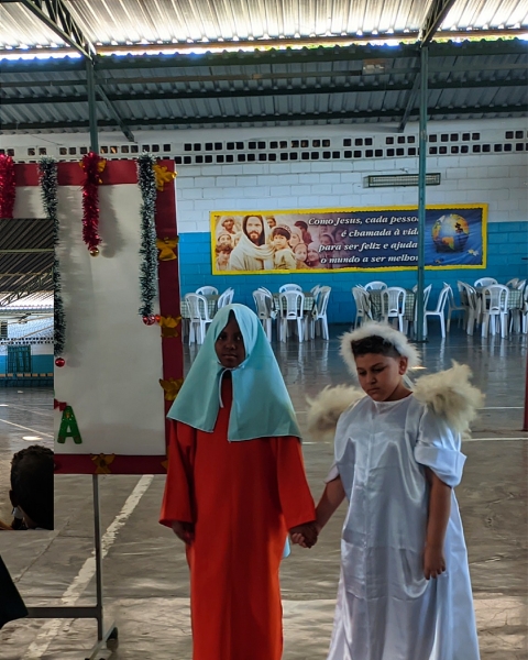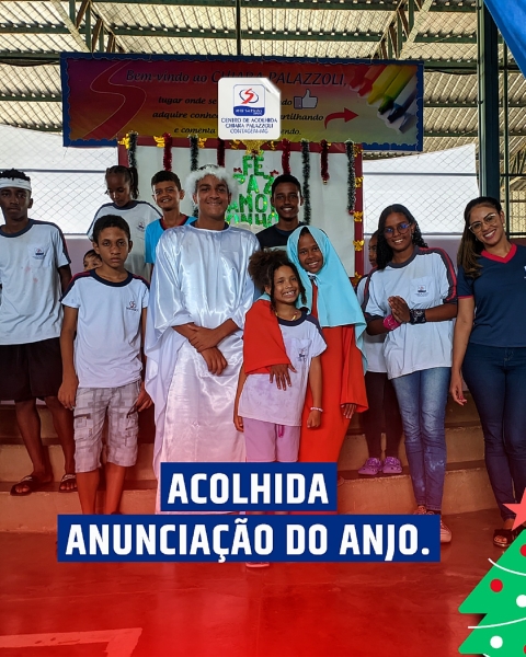 "Sim, eu serei a Mãe do Salvador" Continuando nossa preparação para a celebração do Natal, a educadora Elizabete preparou uma acolhida do momento da Anunciação do Anjo Gabriel a Maria. Com uma encenação linda deste momento, os educandos se emocionaram e aprenderam sobre a importância do SIM de Maria, que nos deu o nosso Senhor Jesus.