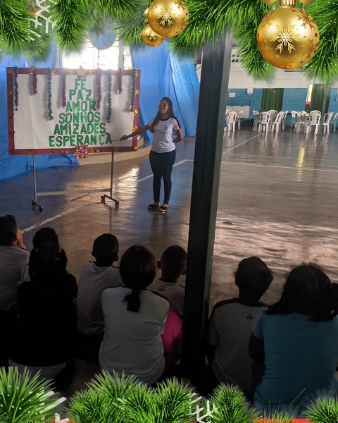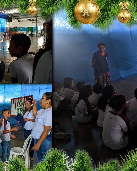 A magia do Natal estava no ar!! Nossa casa entrou definitivamente em ritmo de Natal após a acolhida de abertura do mês de dezembro, que contou com música e muito conhecimento sobre esta data! A nossa Coordenadora Aline Barbosa apresentou aos educandos o mural do mês de dezembro, com palavras que desejamos viver neste mês, além de apresentar a eles um apanhado histórico sobre o Natal. Por fim, os educandos participaram de um "quizz" de perguntas sobre o Natal muito animado, em que eles puderam testar seus conhecimentos e aprender mais sobre esta data que AMAMOS!!