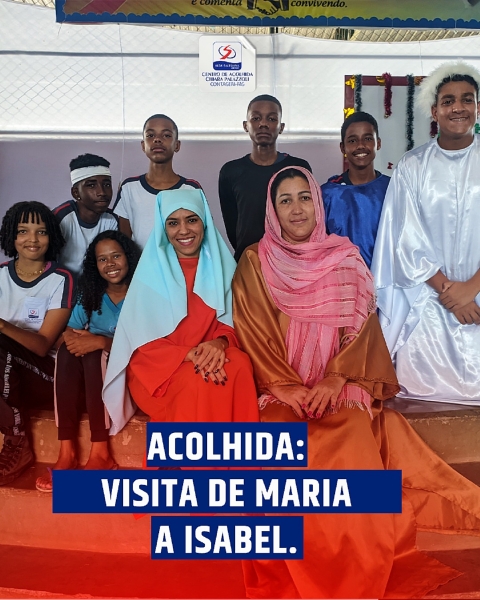 Bendita és tu entre as mulheres Continuando nossa Celebração de Natal, a acolhida foi sobre a visita de Maria a Isabel, que está descrito no Evangelho de Lucas: 1:39. Foi um momento muito lindo, em que os educandos perceberam a importância da humildade e amor de Maria e Isabel por seus filhos que estavam para chegar!!