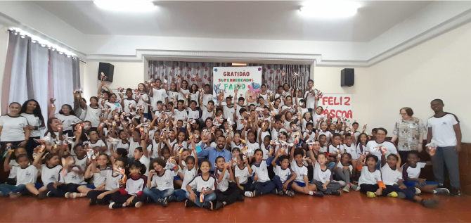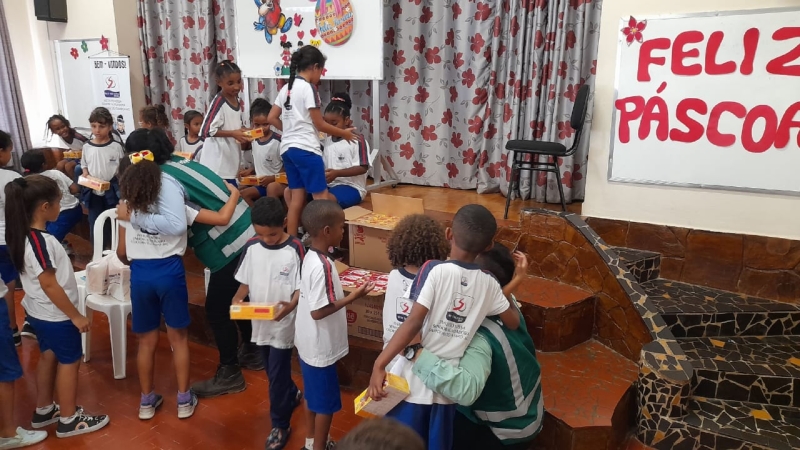 No dia 27 de março, comemoramos a Páscoa junto aos educandos do INSA Obra Social, nos turnos matutino e vespertino, em um evento marcado por momentos especiais. Foi um dia repleto de alegria, com atividades como bingo, lanches e almoços especialmente preparados. Encerramos o dia com o caloroso gesto de nossos generosos benfeitores, que presentearam os educandos com ovos e bombons. Expressamos nossa profunda gratidão a Lúcia, Osmar e Patrícia, ao Farid Supermercados e à Empresa Vale por seu apoio e contribuição para tornar este dia memorável.