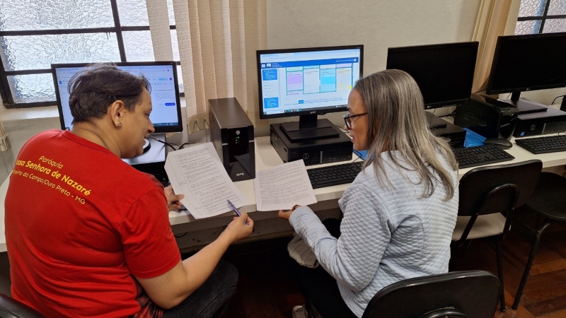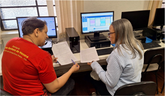 Na manhã desta segunda-feira, (26/08) as educadoras Andréia e Magda se reuniram para dar continuidade aos estudos do Módulo II, Fase 2, aulas 1, 2 e 3 referente a Formação do Projeto Educomunicação em Ação Social, abordando os conteúdos "A ludicidade como ferramenta de aprendizagem", "A diferença entre gamificação e a aprendizagem baseada em jogos" e "O triângulo da gamificação". Revisaram as atividades avaliativas da semana anterior e deram início às da Fase 2.