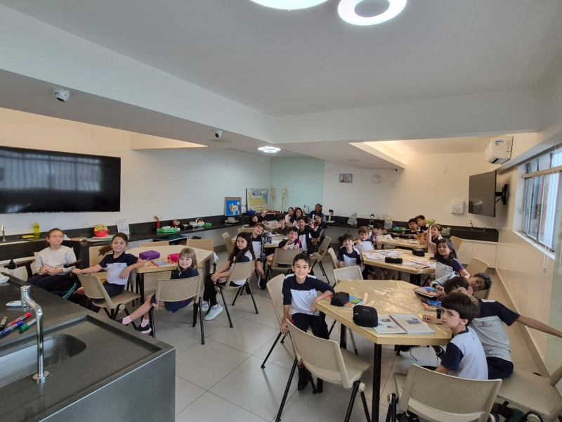 Os estudantes do 3º ano do Ensino Fundamental participaram de uma atividade especial para iniciar o novo capítulo de Ciências sobre a alimentação dos animais, proposto pelo livro Nautas. A aula aconteceu no laboratório da escola e proporcionou um momento de descoberta, curiosidade e aprendizado de forma prática.