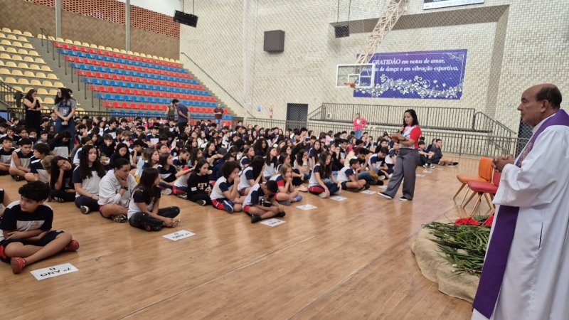 Outro destaque da programação aconteceu na quarta-feira (1º), com o Momento Penitencial conduzido pelo Padre Anchieta. A celebração foi realizada no ginásio da escola e reuniu os estudantes do Ensino Fundamental II e Ensino Médio em um momento de silêncio, reflexão e preparação espiritual para a Páscoa.