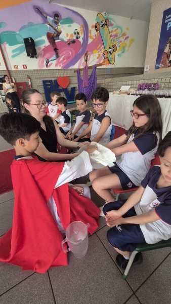 Na terça-feira (31), foi a vez dos estudantes do Ensino Fundamental I aprofundarem a reflexão. Pela manhã, as turmas dos 2º e 3º anos participaram do encontro, que teve continuidade ao longo do período. À tarde, as vivências envolveram os alunos dos 1º, 2º, 3º, 4º e 5º anos, reunidos na área coberta da escola.
