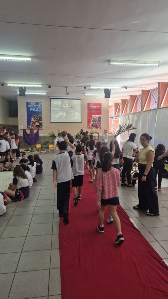 Durante esses momentos, a música “A Semana Santa Começou” acompanhou as atividades com as turmas menores, contribuindo para o clima de acolhida e espiritualidade vivenciado pelos estudantes.