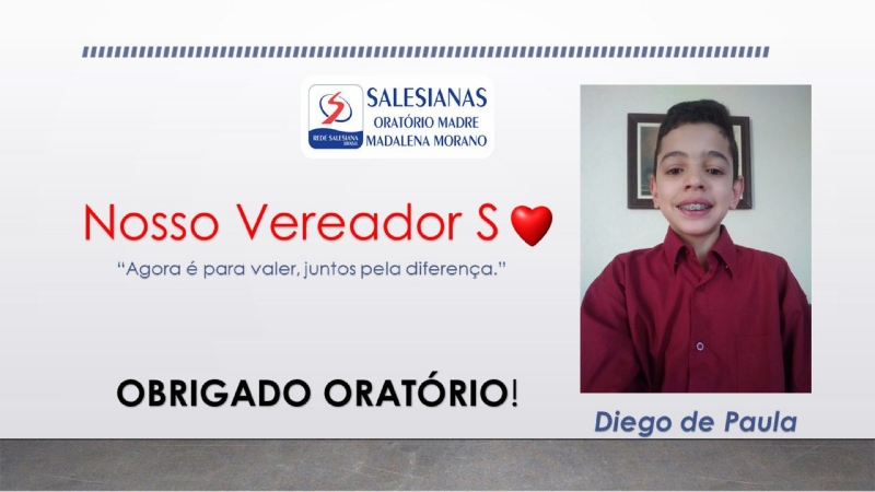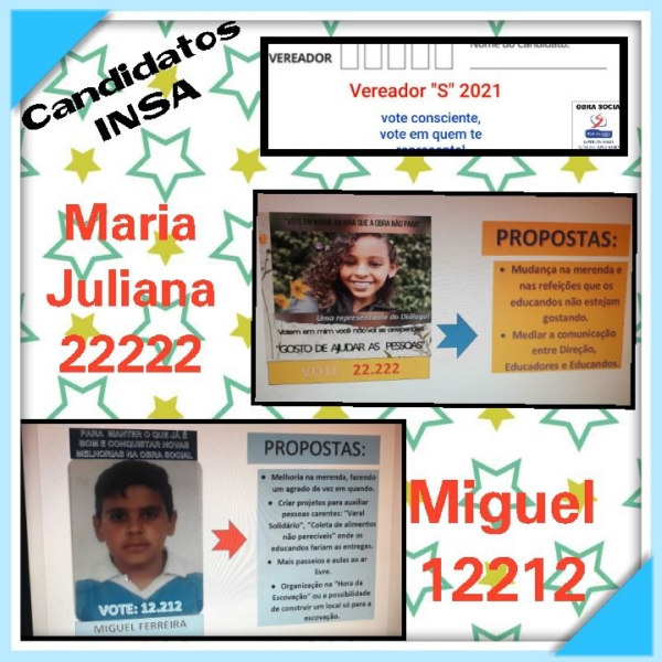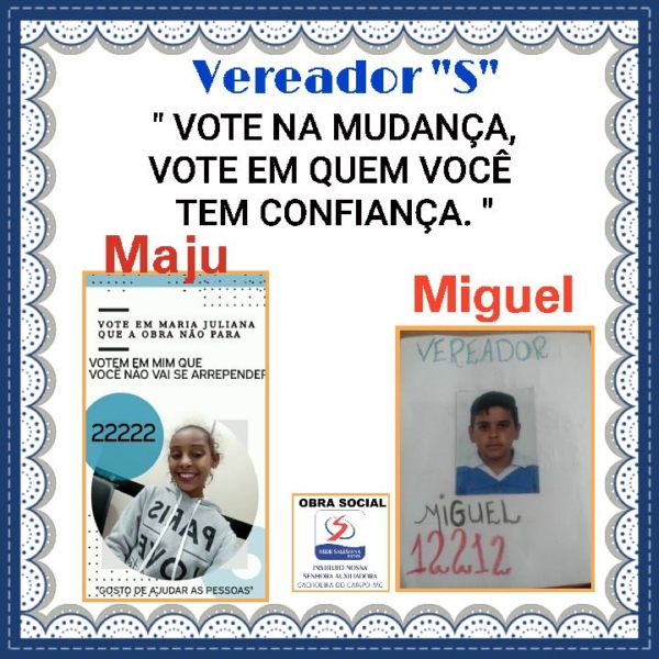 Para o desenvolvimento integral das crianças e adolescentes é essencial levar cada educando a compreender seu papel como cidadão. É imprescindível trabalhar o tema “democracia” com os educandos, visto que estão inseridos na sociedade e a nossa missão é proporcionar oportunidades para que eles se fortaleçam como sujeito de sua própria história e cidadãos capazes de promover a transformação, tornando a sociedade mais justa e fraterna. Parabéns a todos os candidatos pelo exercício de cidadania e ao Vereador S, vencedor de cada Obra Social.