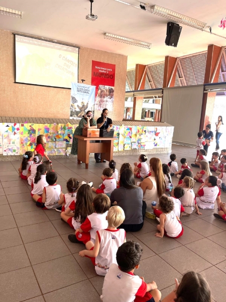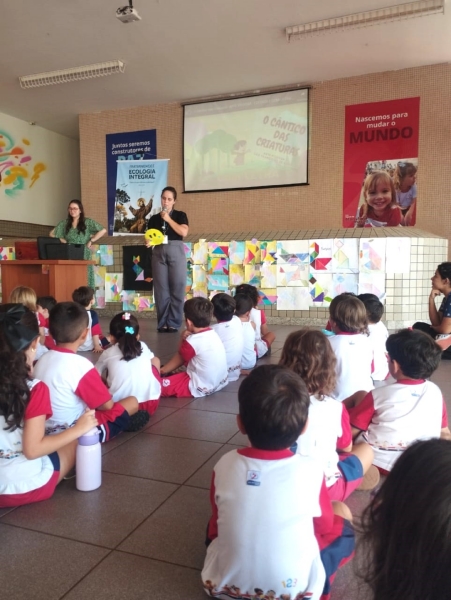 Na última semana, as crianças da Educação Infantil participaram de uma atividade especial sobre a Campanha da Fraternidade 2025, que tem como tema "Ecologia Integral" e lema "Deus viu que tudo era bom". A Pastoral conduziu uma dinâmica para ensinar a importância de cuidar da criação.