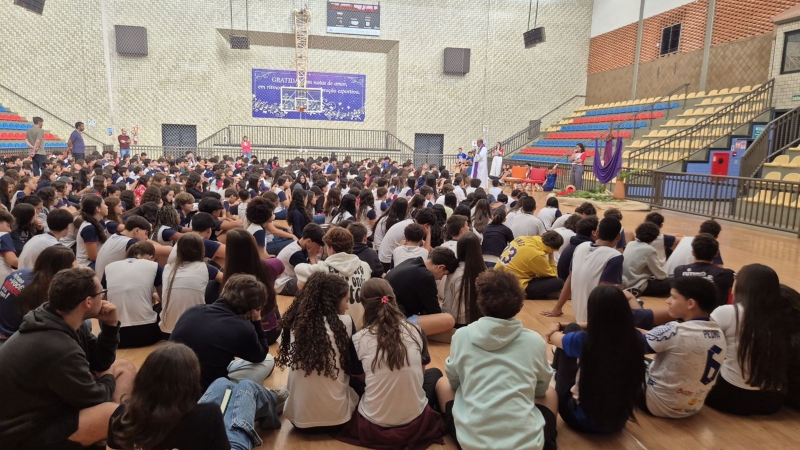 Outro destaque da programação aconteceu na quarta-feira (1º), com o Momento Penitencial conduzido pelo Padre Anchieta. A celebração foi realizada no ginásio da escola e reuniu os estudantes do Ensino Fundamental II e Ensino Médio em um momento de silêncio, reflexão e preparação espiritual para a Páscoa.
