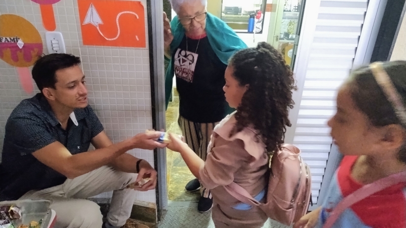 Depois, hora de parabenizar com bolo, fotos e muitas palmas, celebrando com muito afeto e entusiasmo cada criança ou adolescente aniversariante. Vale destacar que muitos aguardam esse momento na obra pois, relatam que a própria família não lembra de parabenizá-los em seu dia.