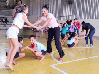 No dia 14 de julho (segunda), a obra recebeu a meninada de 7 a 10 anos e no dia 15 (terça), a galera mais adolescente, de 11 a 15 anos. Foram dois dias de atividades lúdicas e de fortalecimento da convivência em grupo. As educadoras Tamires Vieira e Camila Lima Silva foram as responsáveis de elencar as atividades em grupo e trouxeram propostas bem sucedidas.