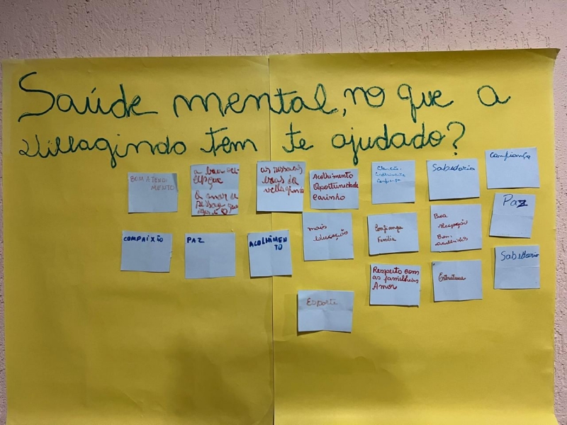 Os encontros acontecem quinzenalmente nos quais os participantes tem voz ativa para a escolha dos temas a serem trabalhados nos próximos. Já foram discutidos o “quem sou eu na minha família” com a contribuição da psicóloga Rosilaine; “meus reflexos me refletem”; “saúde mental, no que a Villagindo tem te ajudado?”, entre outros assuntos.
