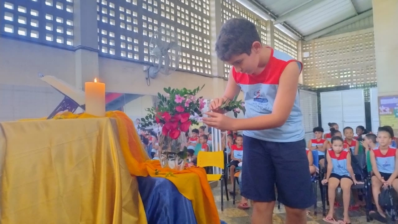 Para concluir esse ciclo, toda a comunidade educativa reuniu-se em 30 de setembro em um momento simbólico de fé e comunhão, conduzido pela irmã Tania Maria Cordeiro, diretora da obra social. A celebração contou com a participação ativa dos atendidos, que protagonizaram cantos coreografados, leitura da Palavra e a encenação da parábola “O Bom Samaritano”.