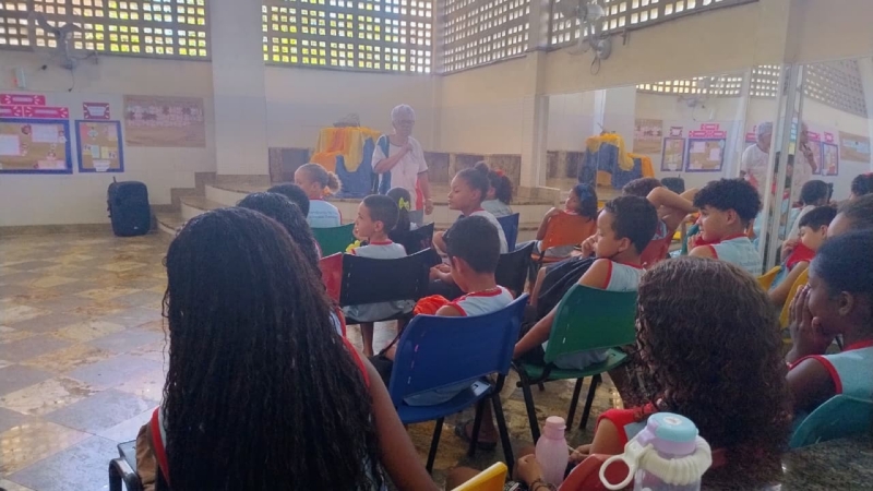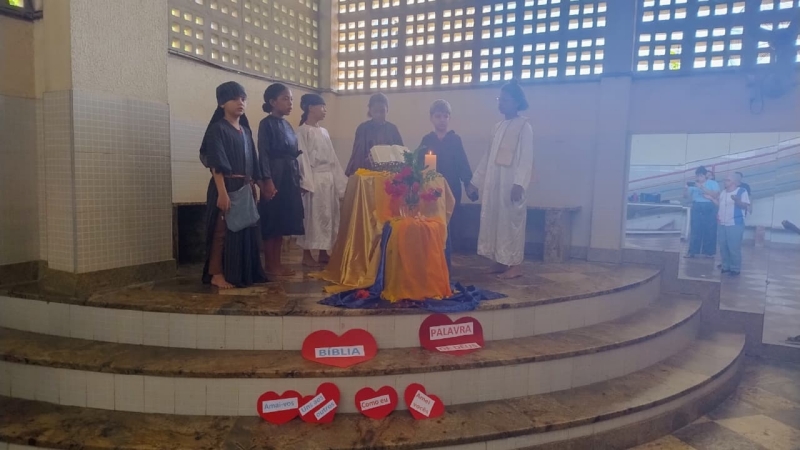 Após o momento celebrativo, as crianças e adolescentes participaram de atividades coletivas relacionadas à Bíblia, como o Quiz Bíblico, Jogos Temáticos e a exibição de vídeos produzidos pelos participantes da Oficina de Tecnologia Verde, além de outras dinâmicas em grupo.